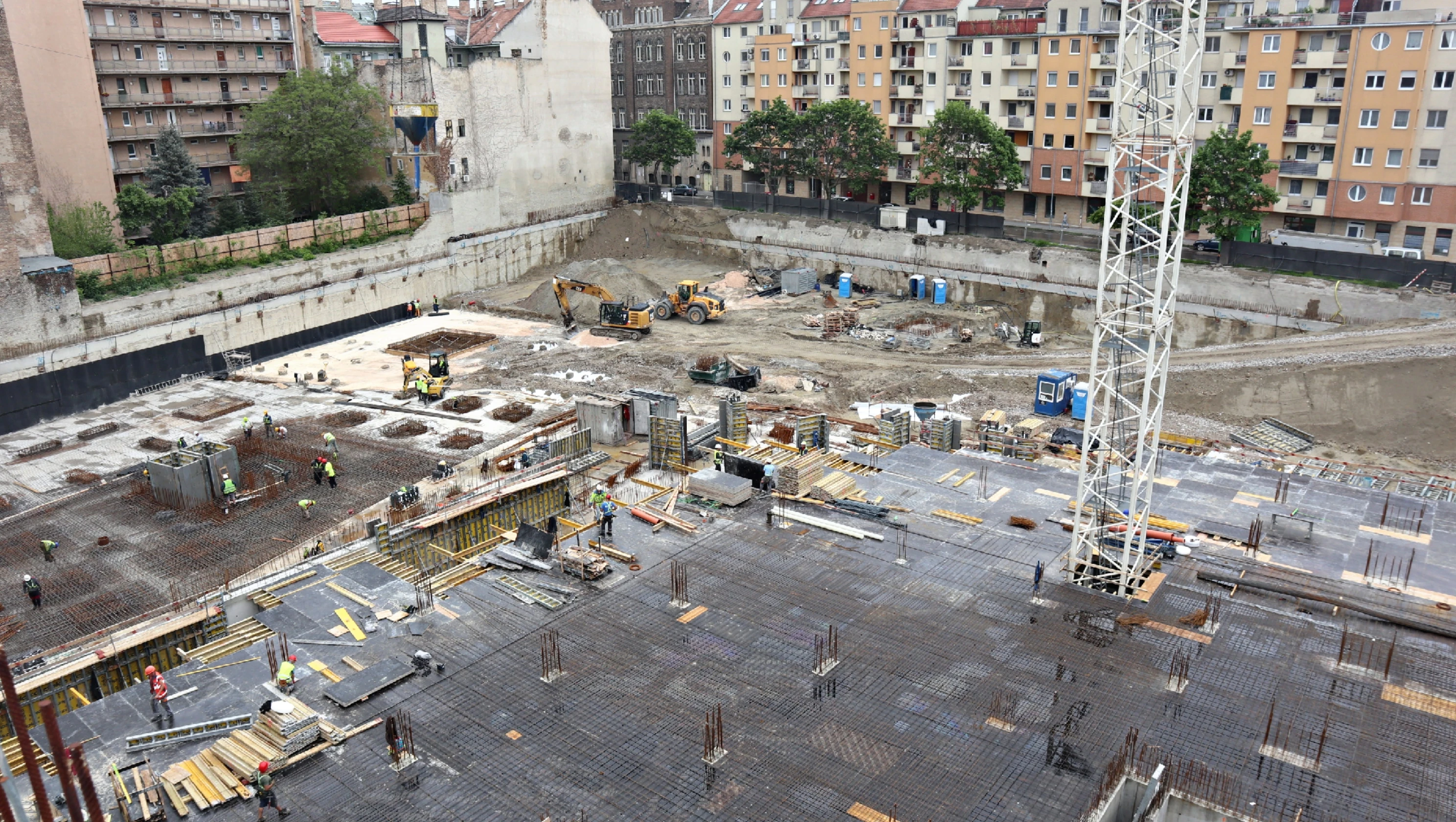 A C épület alatt elkészült a P2 parkolószint padlója, jelenleg már a P1 parkolószint zsaluzatának és vasalásának munkálatai zajlanak.