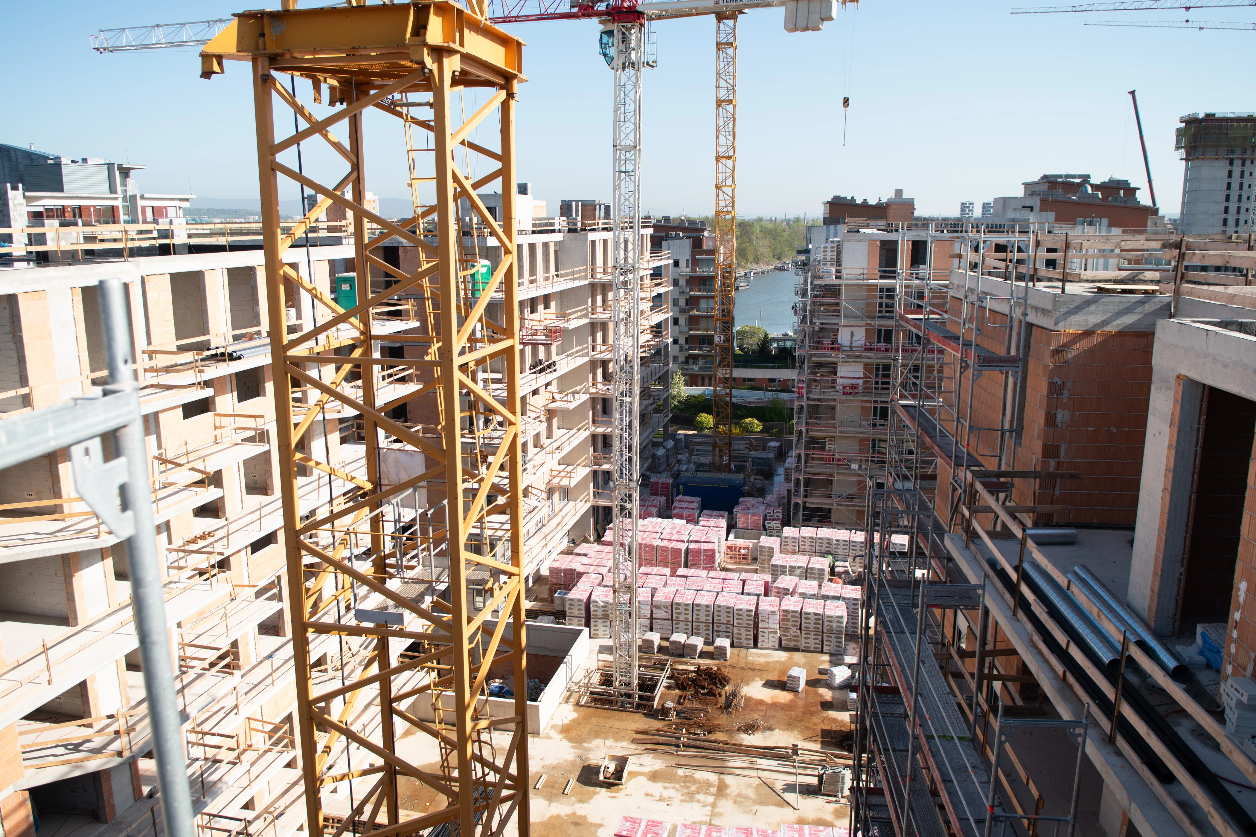 In Buildings B, C, and D, the frame infill, internal partition walls, and floor-to-floor partitions between levels 1 and 8 have been completed.