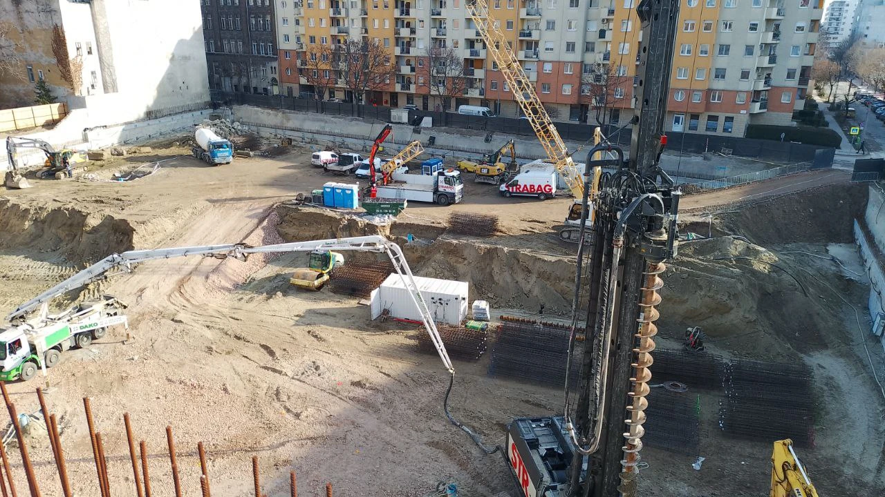 Meanwhile, excavation and shaping of the construction site continued, setting the stage for the next steps.