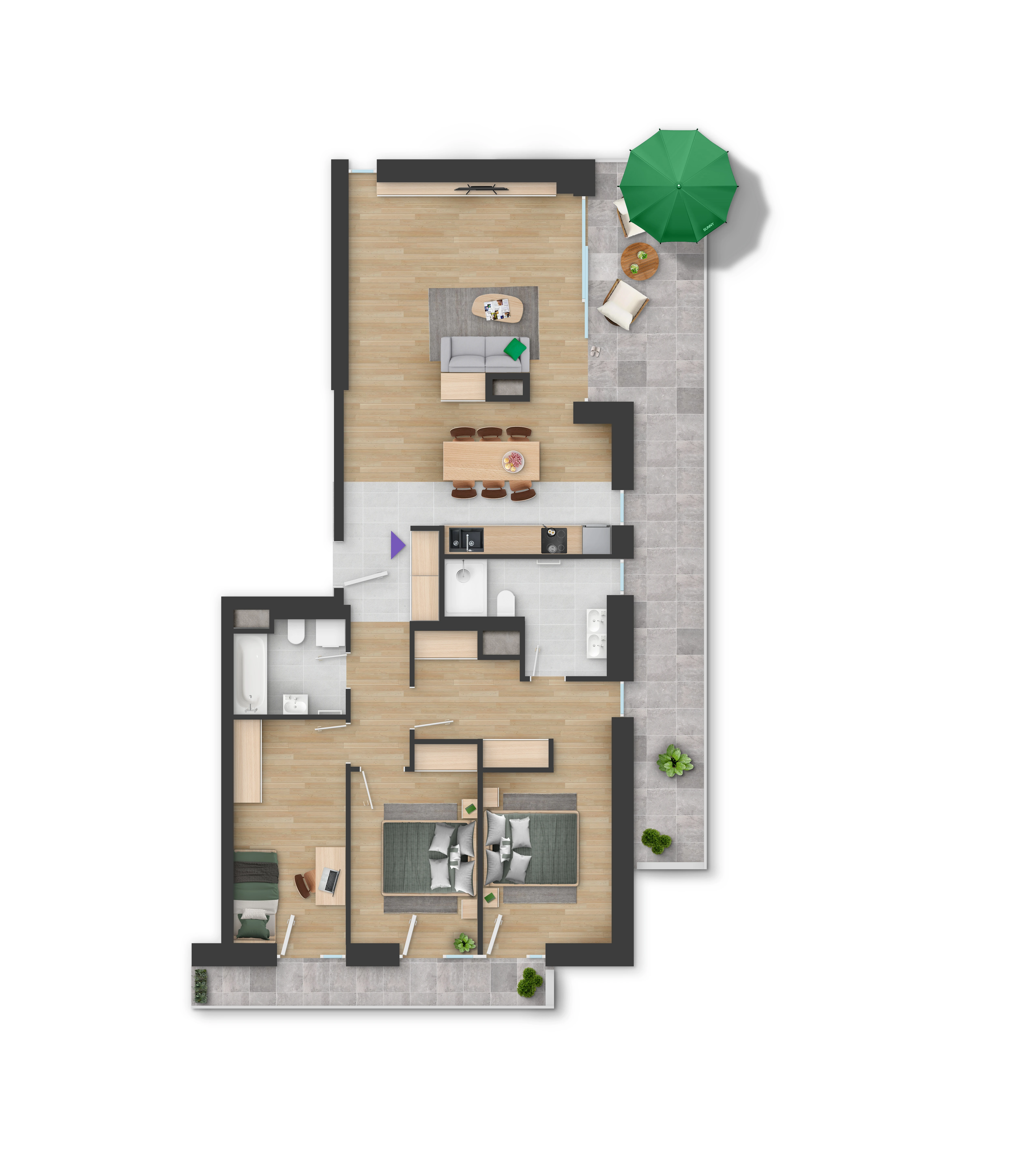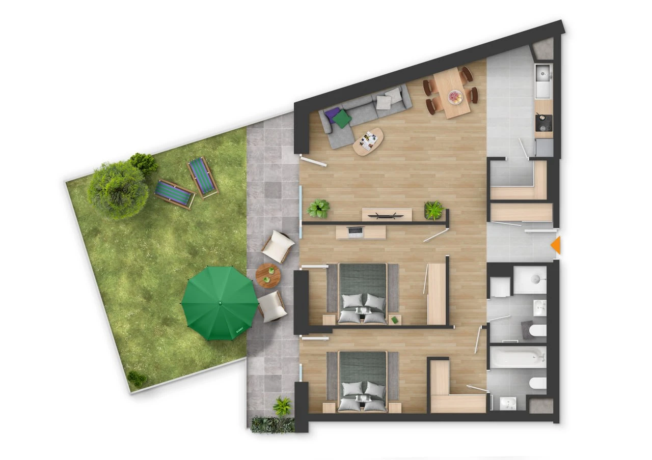 Parkville Residences is a modern residential complex in the dynamic and completely revitalised neighbourhood of the 9th district. It offers comfortable apartments for those looking for a new and cosy home. Due to its location, it epitomises a youthful, urban and green lifestyle. The designers of Parkville Residences have placed particular emphasis on bringing nature back into the urban living space. The complex is built close to three parks and features a green inner garden, rooftop gardens and public terraces that offer the opportunity to relax outdoors. The abundance of green spaces allows residents to read an exciting book or listen to music in the fresh air, study outside after university, play outdoors with their children and even invite friends over for a picnic. Parkville — Where life blooms!